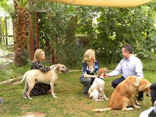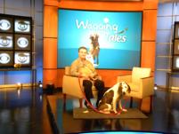 Tim Link on San Diego Living with host, Renee Kohn, Trish from the Helen Woodward Animal Center and Evian (dog)