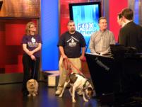 Tim with Hosts, Denise Plante & Mark McIntosh, and Sam (dog) with Sean from Denver Dumb Friends League