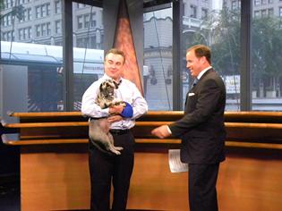 Tim Link and Patches (cat) with hosts, Lorri & Larry